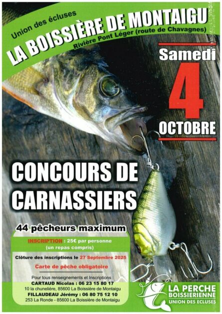 La Perche Boissiérienne et l’Union des Écluses organisent un Concours de carnassiers le samedi 4 octobre 2025.