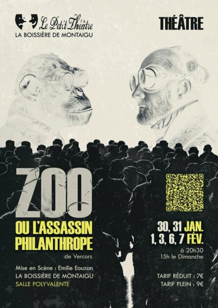 Le Petit Théâtre présente sa pièce “ZOO ou l’assassin philanthrope” à la Salle polyvalente les 30, 31 janvier et 1, 3, 6 et 7 février 2026.