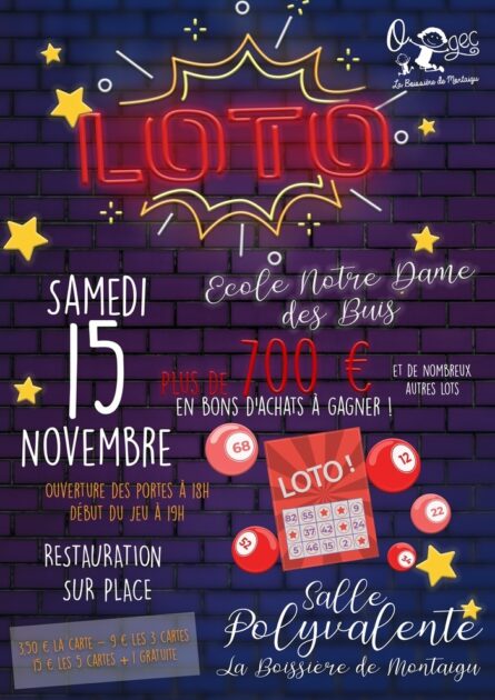Le samedi 15 novembre 2025 aura lieu le Super LOTO organisé par l’OGEC de l’école Notre Dame des Buis à la Salle Polyvalente.