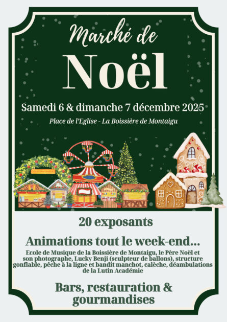 Le Marché de Noël, organisé par Buxia Entreprises,avec le soutien de la Commune de la Boissière de Montaiguse se déroulera les samedi 5 et dimanche 6 décembre 2025, Place de l’Eglise.